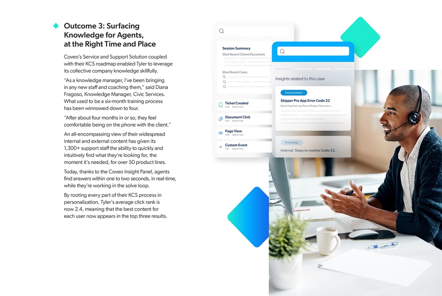 With more than 1,300 support members serving +40,000 installations in +13,000 locations, Tyler had a deluge of customer support information. Four customized CRMs, an additional nine platforms filled with content, and a legendary reputation to maintain meant they needed a solution, quickly.