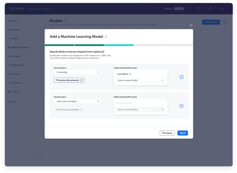 Our question-answering model works with other Coveo machine learning models, such as Automatic Relevance Tuning, to leverage contextual information and provide more refined and personalized snippet answers.