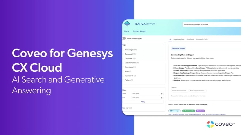 Discover how Coveo’s AI-powered integration with Genesys CX Cloud transforms customer support by optimizing self-service, enhancing agent efficiency, and streamlining knowledge management.