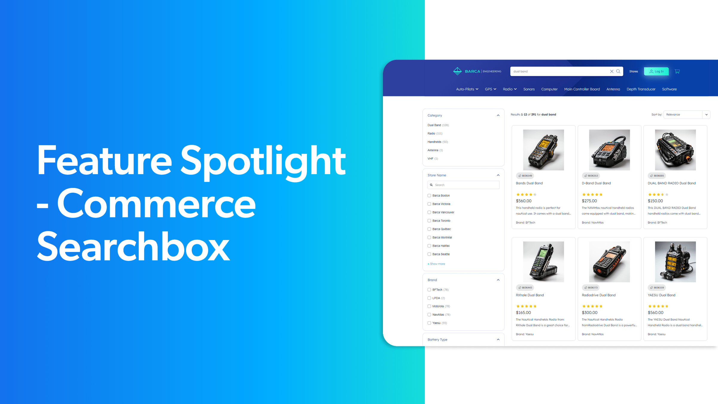 Coveo is an AI Cloud Platform that powers search, recommendations, and personalization experiences for SAP commerce storefronts. Coveo is well tuned for large and complex B2B requirements with unique indexing technology, innovative machine learning and proven enterprise scalability for some of the industries most extensive digital storefronts. Let's take a quick look at Coveo in action. When customers login, they are presented with a homepage that is personalized for them based on previous interactions, their context, order preferences, and more. For example here we notice buy-again recommendations based on previously purchased sonar equipment as well as recommendations based on recently viewed products. When using the search box, Coveo automatically suggests queries and displays relevant product previews while customers type. It does not matter if a customer is searching by product name or SKU, if the SKU is not formatted correctly OR even if they make an error in spelling- Coveo’s automatic query correction leads them to the most relevant results. This is all driven by machine learning and successful outcomes from previous searches, this does not rely on ‘keyword matching’ or a lot of manual rules created by your commerce team. The search results page also tunes the order of products for relevance based on machine learning. However, merchandising teams can also easily tune results according to your business needs, such as boosting items for campaigns or promotions. Notice the category ‘GPS’ has been automatically selected based on our search. This is part of our Dynamic Navigation Experience functionality. This automatic scoping ensures that if a customer sorts on pricing from ‘low to high’ they will still see only GPSs rather than other less relevant items such as GPS accessories. As most B2B catalogs are large and complex, where products might have hundreds of associated attributes, it can be a challenge for customers to find the exact item they need fast and efficiently. Coveo can help again here with the dynamic navigation functionality. This means the filters that are shown, the order of the filters, and the values within each filter will automatically appear or re-order based on context of the search and popularity. Customer specific pricing and product availability means search can get complicated fast in B2B. However, Coveo is able to handle this seamlessly with our unique indexing capability. Here we see the pricing for ‘Bob the Boat Builder’ but if we switch to a non-logged in session, the public pricing is displayed. The result is lower assisted-sales costs and less frustration for customers. Moving down on the product detail page we see a variety of recommendation models at work here. As Coveo captures more information on your customers’ behaviors and purchases, the machine learning models will automatically tune and recommend the most relevant products for them. Your B2B buyers might also be looking for other types of information to make a decision. Coveo can help you streamline their journey by surfacing any type of content within a single unified results set – here we CAN see documents, manuals, orders, and parts that are contextualized to the search performed. Cannot reproduce in demo environment - replace with: here we see related articles contextualized to the search performed. New customers may typically land directly on a listing page from a Google search. Coveo AI can ensure they land well by also optimizing listing pages automatically so that products are ranked for relevance and conversion. Coveo also uniquely manages real-time availability directly from the listing page so buyers can filter and view inventory by specific locations or what is available to ship now. A last note on personalization. As Coveo AI is able to map out product affinities and tracks each in-session event, query suggestions and the way products are ranked will adjust in real-time. For example, here we see when ‘Bob’ searches for ‘radio’ the ‘hand held’ radios rank at the top which is different from someone who has just landed on the site and performs the same search. [show incognito window] Finally, with Coveo’s pre-configured analytics dashboards you can easily report on top-performing queries, understand what products customers are searching for and not finding, or accurately measure attribution between search and product recommendations. This has been a quick overview of how Coveo can power more intelligent buying experiences on your SAP storefront.
