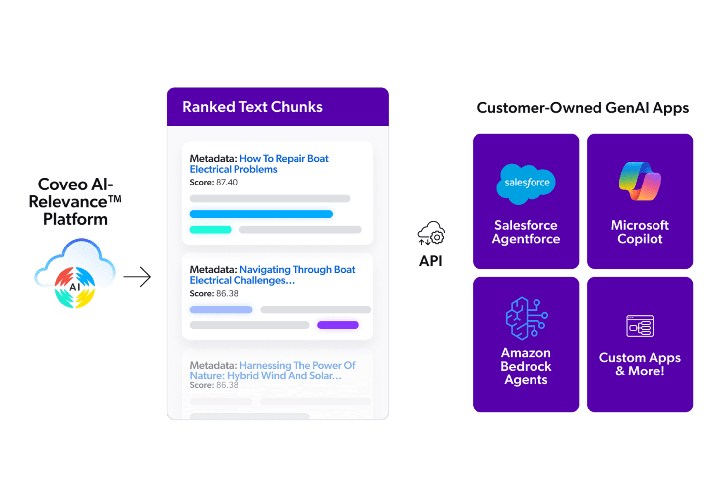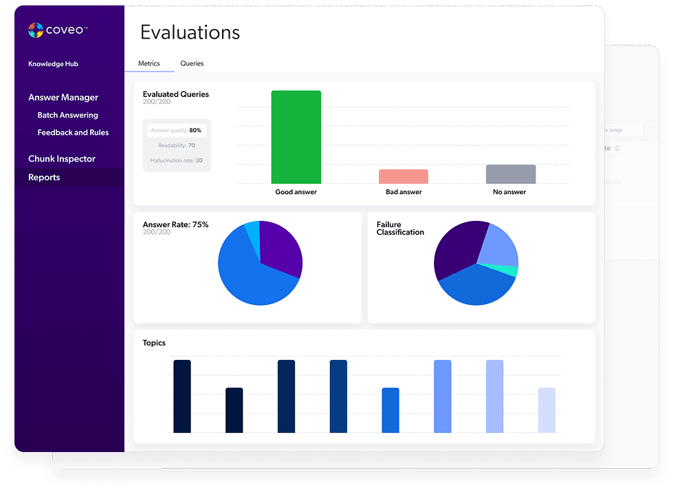 - Choose from fully managed GenAI applications like Coveo Relevance Generative Answering (CRGA) or custom solutions for developers with APIs.