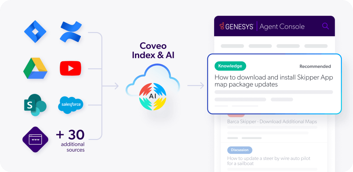 Agents spend too much time searching for, and getting unnecessary information, costing you money and creating customer effort. Coveo uses AI to deliver relevant insights from any source directly in your Genesys Cloud desktop.