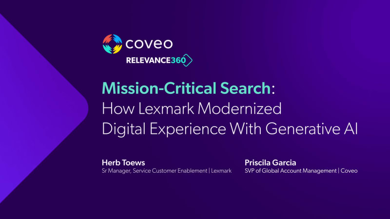 So hello, everyone. Search has become one of the most mission critical layers of the digital experience. It's no longer a utility. It's how customers discover products and content, access support, enable sales, and ultimately make decisions. But evaluating search today is complex. AI promises everywhere, hidden costs and lookalike platforms. That's why I'm excited to welcome Herb Thesaurus from Lexmark. Herb is the senior manager of customer enablement at Lexmark. Herb, welcome. Thank you, Priscilla. It's good to be here with you. So tell us a little bit about yourself and your role at Lexmark and your team. So I am a manager of customer enablement, as you highlighted, and the responsibility I have is with our digital support experiences, whether that's support. Lexmark or whether it is our partner and field facing portal where they access technical information. Excellent. And how, if you had to summarize, how does Lexmark think about search? What would you say to everyone? I think one of the keys for us is that search is about enabling our customers to easily connect with the information they need, when they need it, whatever device they choose to access it on. And really, how do we make it fast, responsive, and available when they query? Right. And if you were to think back about, you know, trying to set the stage and go back to where you start thinking about Coveo and Search, tell us what wasn't working and what were the stakes if you didn't modernize Search in the way that you have done? So a year ago, search for Lexmark was really still outdated. It expected exact term match in order to return results. Users often found that they could only get results if they input one or two terms. And so, as you know, in today's world with generative platforms, etcetera, users are now familiar with and expect a more natural language type prompt and interaction with search. And they expect the search to deliver a summary of the available content. So that's where we were is it was outdated, maybe ten year old technology. And I know that, you know, you made a really important point in your evaluation. It was, you know, open source, looks affordable upfront, but there was a lot of hidden cost implementation, tuning maintenance, obviously, relevance optimization, and everything adds up very quickly and things that we didn't even think about at at, you know, before. So can you tell everybody a bit about the operational burden of owning search internally when you're not search experts as well? Yes. So that's a very big highlight for the partnership that we have with Coveo. We started to evaluate what it would take to modernize the search experience, but not just to modernize it with a short project, but how do we maintain that for the future? And so technology, especially with web technology, is often as a service. And so we saw this as an opportunity to partner with someone where our search functionality and capability would remain modern as we moved forward and not be a twelve month project, and then it becomes to become dated again. So talking about, you know, being dated and maybe moving forward and, you know, where expectations are shifting, customers don't just want to do, you know, a list of links anymore. It's about getting direct answers, especially for support and product questions. So with that expectation in hand, I know you know where I'm going, is what gave you confidence to move forward with new search platform that included also those generative experience from the very beginning? Yes, I think one of the keys was we had a little bit of experience both doing some AI ML analysis of our content, as well as evaluating other partners offering in the generative space. And so based on that experience, we had uncovered scenarios that we could use to test generative experiences. We also had data from our web analytics platform that told us what search terms users were using, what content they were landing on. And so we were able to evaluate with a generative platform, was it delivering relevant, accurate content we could trust? What was the experience from the technicians and the people that are finding the information more closer to what they originally thought? Yes, I think that is one of the key feedback we have received from users is they really appreciate the concise summary that the Generative Answer provides. It will read through the content, five, six, ten documents, and provide a concise summary to the user. And then the user does not have to spend as much time searching. They can find what they need very quickly, and as well, the citations that the Generative Answer use to create the summary, the user can click on that citation if they want to understand more detail and the technical behind it. Perfect. And that leads us to, very nicely, can you share some of the early signs of success? What have you seen? What have you experienced beyond that? Sure. So we first implemented this on our field and partner portal, because that experience is an authenticated experience. The users are high frequency repeat visitors to that site. And so we believe that they would identify quickly whether they believe that the results that they were seeing were accurate or potentially had hallucination. So that was important for us. And what we have seen is that approximately eighty to ninety percent reduction in the queries and prompts, which have no relevant results returned. And so that for us is huge. That was an important success factor when we were looking for the search and relevance of the content. Excellent. If you could, Herb, give one piece of advice to leaders that are reevaluating search or replatforming their website, what would that be? I think the important thing is finding a partner that you can collaborate with, and who will enable you to remain cutting edge as you move forward. It also speeds up the deployment and the time to begin achieving business value in return. So for us, Coveo was an 