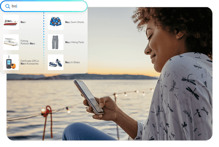 Predictive query suggestions and relevant search results powered by multiple layers of AI models guide visitors through their shopping journey.