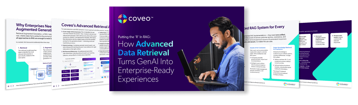 This guide explores how relevance-augmented retrieval transforms LLMs into secure, scalable, and trustworthy AI systems. With Coveo, enterprises gain unified content access, document-level permission enforcement, and an intelligent system that continuously learns from user interactions to serve the most accurate, context-aware answers — powering AI you can trust, scale, and measure.