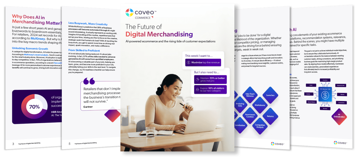 In a world where personalized, customer-first experiences are key to survival, AI is no longer optional — it’s essential for staying competitive and relevant. As the shift to customer-centricity accelerates, this ebook shows how AI can transform digital merchandising, helping you anticipate customer needs, streamline operations, and set your business up for long-term success.