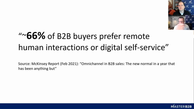 Welcome master b to b where we take on the key issues for manufacturers and distributors in digital transformation. And we have a doozy today. We're looking into our crystal ball and predicting twenty twenty three what's gonna happen in b to b e commerce. So stay tuned for that folks. My name is Brian Beck. I'm thrilled to be joined again today on this series with, with by Andy Horr. Andy, for those of you who don't know him. He's a long time three veteran. He, seven years spent seven years with Forrester Research running the B2B e commerce practice. He's the founder of Paradigm B2B, on speed dial with CEOs all over the planet. Andy, I'm I'm excited about this topic today. Good to be here with you. Yeah. This is gonna be great. By the way, my prediction twenty twenty three is I'm gonna be wearing my glasses a lot more. So it happens too. On that one. But, yeah, so there's no Brian. Brian is the managing partner of Inceva, which is an agency that helps companies optimize their presence on Amazon. He's also the author of a book of billion dollar B2B commerce, and he's a practitioner with what? Twenty years of operating experience. So, Brian, great to be hosting this one. And this is a different format. So this is gonna be interesting. This can be a lot of fun folks. You know, we're we're incorporating a lot of the elements of our un webinar series here. But this this is a webcast. And we we still want to, hear from you. So please insert your comments. Feel free to disagree with our predictions. Put that right in the q and a. We actually have live commentary and live reactions from practitioners and industry experts all through this today. So we have a bunch of folks who are gonna be bringing on through the show this this afternoon. And talking to them about what they think about our predictions. And and as the audience, we have six predictions coming. At the end of each prediction, you are gonna have a chance to vote on whether you agree with us or disagree. And finally, we're gonna hold ourselves accountable, Andy, to these. Right? So at the end of the year, or or early next year, a year from now. We're gonna look back and say, hey, were we right or were we wrong and hold ourselves accountable to to our predictions? So, again, this is a this is a webcast format. So, again, we wanna hear from you. We're gonna reveal the answers to the poll questions at the end of our session today. So, you know, stick around. We also did a LinkedIn poll for each of these. So stick around for that. Now, Andy, this is a hot one. We posted this on LinkedIn as we always do. We asked the industry what they thought. And we asked without revealing what we think, what they thought, you know, through polls. We did six polls over the last two weeks. And and I counted it up. We got over forty thousand likes who use boats, shares, comments. I mean, this, again, these are hot hot industry topics that we pull we we hit some hot buttons here And we also have a lot of great folks joining our our, on, on, well, I almost said on webinar, webcast today. And, Andy, who you who you seen come in? I'm just looking at a few names of Mike Westerman from HD Supply. We've got Sarah Galo from Dow, chemicals, Andy Goodfellow. Sweet g from Zuro. And, Terry Elkin from, from ResTech. So and I think this is one of the most heavily populated ones we've ever done. So it's just gonna be really interesting. We're expecting hundreds of people that I already see a lot of these folks come in here. I'm seeing dart container, Adam Coupex from Sloney. Adam, how you doing, root Rudy, you're here from AMG. Good to see you, Sonapar, GE Crescent Electric. Even Amazon is here. So so there's maybe they maybe they know we're gonna talk about them a little bit interesting. Alright. I I think it's about that time. We gotta get right into this because we've got a lot to share on this session folks let's go ahead and get into it. Alright. Let's reveal Oh, my goodness. Doctor Thomas is cracking me up, Andy. Alright. Our prediction number one. Ready folks? Is that in twenty twenty three, distributors will get squeezed by vertical marketplaces and by manufacturers going direct And we have some data around this, Andy, why don't you why don't you tell us what this one's all about? Why do we think this? Yeah. You know, sometimes a simple story is quite a fine. So, assuming maybe you'd seen this a couple weeks ago of CH Briggs, which is a distributor of, specialty building materials in Pennsylvania. I announced that at the end of March, they're going to cease operations. Well, there are many reasons why this company is is going to go out of business But at its core, the reason why is because they're getting squeezed by the single largest supplier who, by the way, has decided to look elsewhere both online and offline for distribution. And is a theme that we're continuing to see. We've seen in the past. We think it's going to accelerate, going forward. And there's some interesting stats around this. We think one of the reasons wise because of vertical market places. And, you know, McKinsey said that seventy nine percent of suppliers have built or planning to build or considering building, a marketplace. It's already estimated to be about a three point six trillion dollar marketplace by the end of next year. And, people are are seeing that vertical marketplaces and market places overall are growing seven times the rate of b to b commerce itself, which is growing pretty rapidly as well. So, you know, the data's there. Plus, you know, for those of you who maybe don't marinate in this like we do, I mean, look at some of these companies that are already vertical marketplace. To be honest, when I compiled this data, some of these companies I'd never heard of before, you know, but we have companies do billions of dollars, hundreds of millions of dollars, They're starting to carve up pieces of the b to b e commerce landscape. So and, of course, we can't forget about know, the