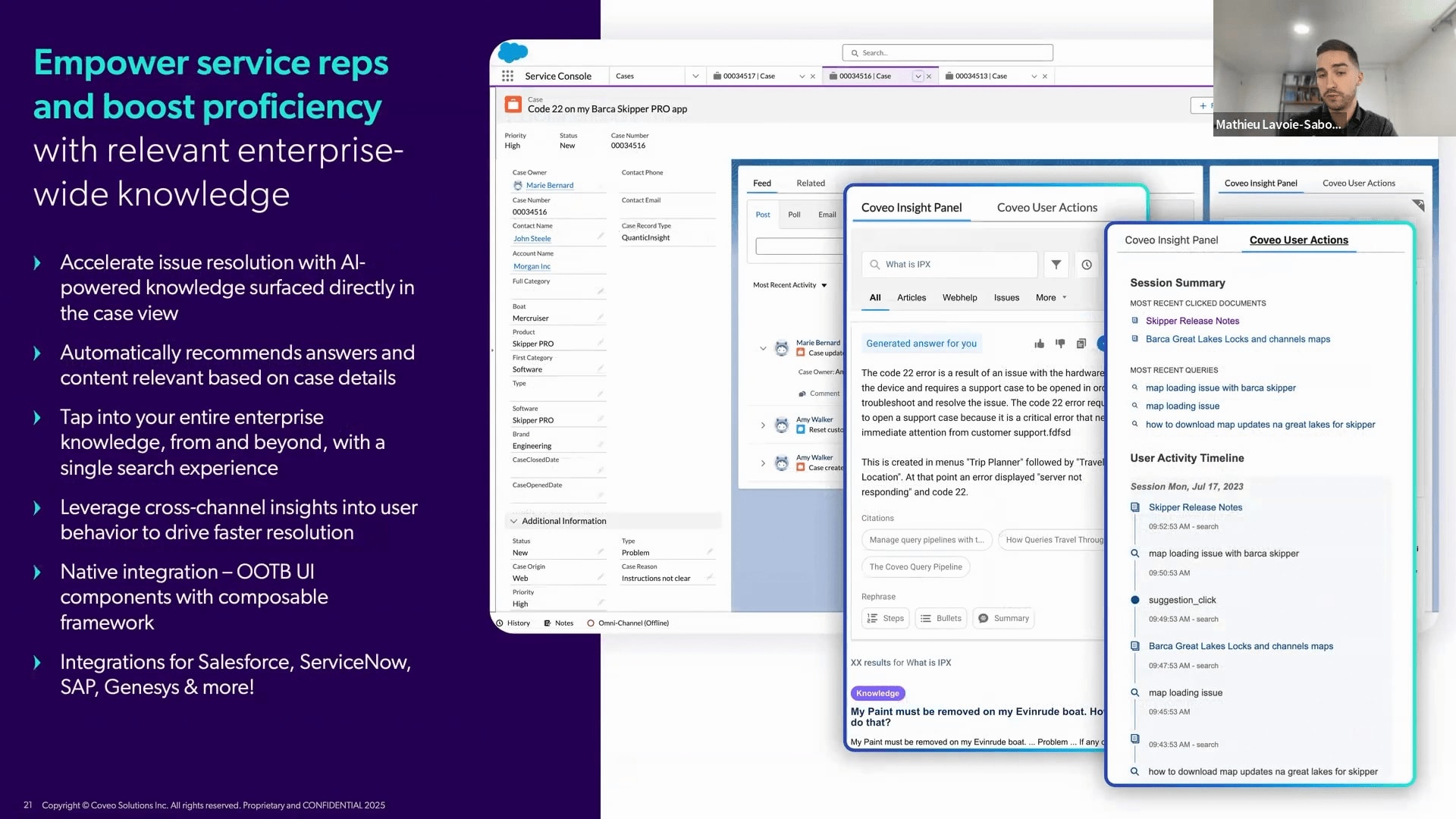 Hello, and thank you. Matthew and I are really excited to talk to you about how you can turn your portal into a case deflection and answer engine and appreciate the next hour we'll spend together. The today's agenda, what we'll cover are the trends and challenges shaping service, capabilities, and metrics that matter. And then Matthew will cover real customer case studies, which are direct experiences he's had with some of our largest enterprise customers. Diving right in, I wanted to start by looking at things a little bit more holistically. Now we work with countless service organizations, and we try to stay on top of market trends, which typically talk about, you know, challenges and the the latest set of innovations. But it's important to take a step back to really frame what it is that we're really doing as a service or organization. K. And stats like this really highlight the importance the service organization plays. When you see that existing customers, which is essentially what service and support teams support, existing customers account for sixty five percent of an organization's total revenue growth. Now that is a significant number, and I think it's important to highlight that because when we hear about service, we sometimes see that AI thought about as a post sale function, sometimes seen as an after the thought after the fact thought team, and sometimes not prioritize as much as it should be. When we look when we look at numbers like this, it might change how we look at and prioritize those service investments. So I thought it was important to show really the importance of of of providing the right solutions, not only for end customers, but for the teams that are supporting them. Now I think we're we can agree that we're all here because we know that service plays a big role in a company's growth trajectory. And we know and can be validated when we see statistics also like this. Eighty eight percent of customers say good customer service makes them more likely to purchase again. And this also suggests that your existing customers are also likely to refer your brand to prospective customers as well. Again, emphasizing the fact that service and support are in service of this big customer base, which contributes to sixty five percent of your total revenues and are can impact whether you're gonna be referred to new new logos as well. So, again, a very important role to to play and to consider. But we know and it seems that the service organization is under massive transformation, and maybe that's partly because, technology is constantly, you know, coming out. There's new technology coming out all the time. So we wanna take a look at what's happening out there in terms of what's expected from service organizations today versus what where they should be moving towards in the future. So today, we we see that service and support organizations are viewed primarily as cost centers. Leaders are, overseeing people and process, dealing with complex legacy technology. We hear there's low digital maturity and digital savviness. Leaders are focused more on channels and not enough on knowledge management practices, and there's an overwhelm overwhelming focus on operational and process efficiencies. Does any of this look or sound familiar? Now compare this with the future state of where service is expected to go. Service is expected to be viewed as a revenue generator, to be leaders of service delivery excellence, driving digital transformation, being digitally proficient and change management leaders within the organization, taking a channel agnostic and outcome focused approach, leveraging AI to drive those knowledge discovery and knowledge management practices, and, of course, ensuring that customers receive value. They feel that they're being taken care of because, again, they will impact future revenues for an organization. Where we are at today with service is that it's expected to be a seamless ecosystem where teams, systems, and knowledge must unite to enhance the overall customer experience journey. Now what you see here are various touch points that not only your customers are experiencing, but your service and support teams are having to manage through to ensure they're providing great service. And as you can see, there's a lot of different touch points in areas of the business to consider. So this is extra challenging when we consider that those various areas I just showed you are typically managed by different teams. So you're gonna see me show this journey a few times throughout the presentation, and we like to look at this as, a buying journey and key steps in that buying journey. For example, you have a prospect that might be going to your website to browse and search and do their discovery. If you have a transactional element on your website, they may be purchasing or buying something there. In the post sale process, this is our traditional view of service where customers are either getting sales service on your portals, reaching out to your contact center. And then we have these other types of roles within your company that are also servicing your customers. Think of teams like sales, your product organization, perhaps even your contracting teams. So these touchpoint represent all the ways or the areas that customers and prospects are experiencing your brand. The problem is that each of these areas is managed by unique departments. So your websites are typically managed by your marketing and web teams, and they have their own goals. They want to drive conversions. They wanna drive pipeline or impact influence revenue. On the other hand, you have commerce or merchandisers who truly are concerned about average order values and more directly impacting company revenues. Again, when we get into that post sales post sales space, support leaders, right, we care about reducing costs, resolution times, improving CSAT and ESAT. And then, of course, you get into, again, all of the ot