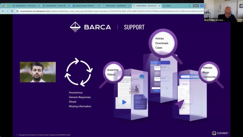 Hey, everyone. Thank you for joining our webinar today. My name is Daniel Drazen, and I am the lead product marketing manager for our service line of business at Coveo. I'm also thrilled to introduce my colleague, Brad Phillips, who is our lead solution engineer here at Coveo. We're gonna discuss a very exciting topic, AI search, the AI foundation your support strategy needs. Before we get into the content that we have prepared today, I have a couple of housekeeping items to cover real quick before we get started. First, everybody is in listen only mode. However, we do want to hear from you during the presentation. So we'll be taking some questions at the end of the session, so please feel free to send those along using the question answering section quest q and a section, on your screen. Today's webinar is being recorded. You will receive the presentation within the next twenty four hours. So with that out of the way, we have one more thing to quickly cover. Coveo is a publicly traded company, so we advise you to look at our latest earnings and our annual report on the business. And we may use some forward looking statements in the presentation, and so we recommend you to make decisions based on products that are available in the market today. So here's a quick overview of the agenda and what's gonna be covered. We will start with why unified AI search, what it is, and how you can apply that in various use cases for customer service. Everything from self-service to case deflection, to when grounding AI agents. And through the course of the webinar, Brad and I will share some real world success stories and examples of how Coveo customers have used unified search in production. And then we will switch to a live demo where Brad will take us through how Coveo looks like and how you can, how how unified AI search really works under the hood. And then at the end, we will be taking some questions. So before we get into the nuts and bolts of AI and such technology, I I wanna start with the AI. Because if we are all honest, we're drowning in these initiatives that that addresses these value drivers for customer service. We have operational efficiency, we have service quality, we have revenue growth. So these are three strategic value drivers that are defining customer service success. And what's interesting is all these three value drivers are all interconnected. For example, if you if you take service quality, it's it's no longer just about solving problems. It's service quality has really become your brand differentiator in twenty twenty five. And when customers, they can switch to a competitor with a few clicks. And because they can do that, that experience that you create for them is actually what keeps them around. And when it comes to CSAT and NPS scores, they are really important to track more than ever as those metrics are directly tied to whether customers stick with you or walk away. On the operational side, everyone's trying to figure out how to handle more volume without hiring more people. And so you want to automate the simple stuff so your team can stay focused on on the more complex issues. But you can't automate your way into terrible service. There there's this balance you have to AI. And then there's revenue growth, And this is where it gets interesting because the smartest teams aren't just thinking about support as a cost center anymore. They're actually using customer interactions to drive sales, whether that's through upselling or cross selling or just preventing churn by delivering some amazing customer service. And so when you have the right information at your fingertips, and that doesn't just and that doesn't mean hunting through five different systems, suddenly you unlock better service, you work more efficiently, and then you're able to spot revenue opportunities using analytic using analytics. And this is what's happening with the brands that have been using Coveo. So I'm excited to share more of the story and the demo and the stories that support it. And so to put some real numbers behind why this matters so much, these aren't just theoretical problems because this is what's happening right now when customer service falls short. Nearly three out of four customers, that's seventy two seventy two percent, these customers will switch companies after just one bad support experience, not multiple bad experiences, just one. So even if you have a great product, competitive pricing, solid marketing, you actually can lose a customer because they can't couldn't get the help when they needed needed it the most. And when you add all of that churn across just the US alone, we're talking about one point six trillion dollars in lost revenue annually, and that's that's a huge number. And then there's what's happening to your teams. Agent turnover is sitting at forty percent annually and it costs about twenty thousand dollars every time you have to replay some replay someone. So the bottom line is that frustrated customers and burned out teams aren't just operational headaches. They're directly hitting your revenue. Every interaction that goes wrong, every agent who quits, and every customer who walks away because they couldn't get answers, it all adds up. This is the cost of actually doing nothing about customer service today. And as a response, what's happening is everybody is turning to AI. And so with all of the costs that we just talked about, it's no surprise that service organizations are looking for AI solutions, and everybody's making a big bet on it. And what we're seeing is this massive wave of AI adoption happening in three distinct phases. It started with conversational AI, which is your basic chatbots, your FAQ automation, that kind of thing. It's pretty rule based and deterministic, but it got people comfortable with the idea of AI handling some customer interactions. Then came the generative AI boom, and suddenly we have AI assistants helping your customer service r