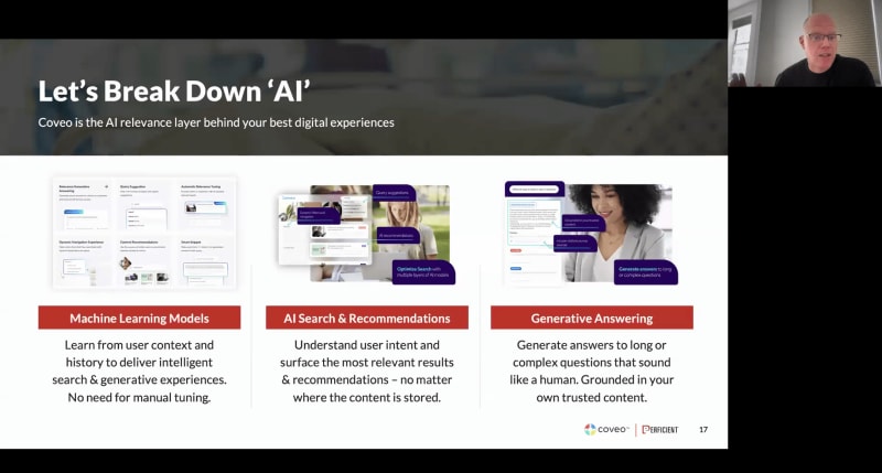 Welcome, everyone. Thank you for joining us on today's session, reimagining fine care, how AI is powering the modern health care journey. It's this today's session is brought to you by Coveo and Perficient. Choosing a provider is one of the most critical and personal decisions in health care. But when digital tools make that process difficult, patients walk away. Think about your own experiences. This may have happened to you or someone in your family. So today, we're gonna share with you how health care leaders AI St. Luke's health system in St. Louis uses a unique solution, to bring, more modern AI care experiences to their patients with AI powered search recommendations and personalization. We're gonna be hosting this webinar live today. So if you have questions, please ask them in the flow of discussion, and we'll do our best to answer your questions or, you know, incorporate, you know, your our responses into the talk track. If you have a question that we don't get answered or if you wanna have a further discussion with, someone from Coveo Proficient, we're happy to do that after the session. What's more, everyone, on the call today will get our copy of the recording as soon as it's available. But let's get started. We've got a great agenda for you today. We'll kick off with some introductions in a moment. We'll get into, why health care looks like commerce and what that means for us as health care leaders and as as digital leaders. We'll explore the AI care solution that Perficient developed, in partnership with with Coveo and others. We'll talk about St. Luke's experience using that solution, and then we'll talk about how you can get started and, of course, answer any questions. AI name is Mike Graley. I am the SVP of marketing at Coveo. I've been with the business for about fourteen years from start up till, you know, where we are now. I'm based in New York City. If you're not familiar with Coveo, we pitch Coveo as the AI relevance company. We believe that every digital journey really is unique, and that's why Coveo offers a platform that enables what we call generative AI search for enterprises. It's the only way we believe that digital leaders can solve that complex problem of creating a relevant digital experience at scale to meet the unique needs of every person, especially when you're you have millions and or thousands or millions of of potential customers and super large volumes of content and products. So, with that, I'd like to introduce you to my co presenter today, Tara Becker, who's a health care expert, who will be, leading us through the beginning of the session. Tara? Awesome. Thanks so much, AI, and and welcome everybody. We're delighted to have you here today. I'm Tara Becker. I'm a principal at Perficient. I am a health care strategist and consumer expect consumer experience leader, here at Perficient, particularly within our healthcare practice. I spent the last decade of my career working with health systems, payer organizations and life sciences organizations. And prior to that, I worked at Mass General Hospital in Boston for fifteen years, doing service line planning, strategy, digital transformation. So I've had a really robust experience of what it's like to be on the consulting side as well as what it's like to be in house. When I was at Mass General leading the AI a doctor and find care experience, although different back then, was part of my charge at Mass General. So this is a very important topic to me, very near and dear to my heart. I'm passionate about the patient experience. I'm passionate about, patient access, and find care is, the gateway to getting patients into your health care systems. And so we're really excited to talk about that today. So health care is looking more and more like commerce. So so what do we mean by that? Why are large health care systems investing in AI care experiences? Well, it's it's pretty simple. The find care experience is the closest to the commerce enablement piece of your digital experience that hospitals and health systems have. It's direct access to, patients, enabling them to get into your system. It drives revenue. It builds trust if it's a smooth and frictionless experience, and ultimately builds loyalty within your health care system. It's really the funnel to digital access for your patients. And so that's why it's really important to make sure that you get this right. You make this as smooth and seamless as possible. We'll talk a lot about, why this matters in the coming slides here. So here at Perficient, we conduct research all the time and and most recently, over the last couple of months, have conducted first party research with consumers who are searching for care. And what our findings, showed us is that forty five percent of consumers aged eighteen to sixty four, shared that they've chosen Digital First Healthcare in lieu of visiting their physician in person. They had a preference for Digital First Healthcare, and that number went up to fifty four percent when we're talking about caregivers in that same age group. Thirty percent of consumers indicated that they moved to a new provider if there was friction in their health care journey. So not just the digital experience, but their whole journey. And twenty three percent of respondents in our first party research indicated that they felt as though friction in their scheduling experience led to adverse health outcomes. And there's one more stat that I want to share that forty one percent of consumers have indicated that they will change providers altogether if the digital experience doesn't meet their expectation, and that comes from third party research. So this really matters not only to delivering a great consumer experience, but it really matters to the bottom line of health care systems. And the good news is that not only is this important to patients, but it's important to caregivers too. Health care systems, want to be delivering that same fric