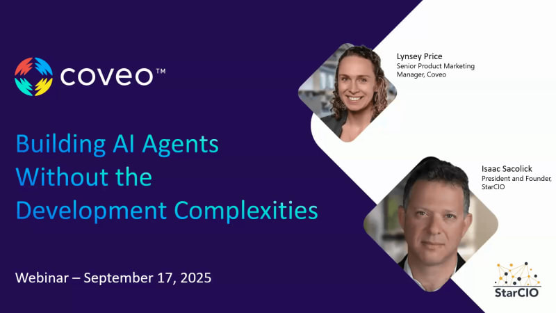 Most AI agent projects stall before they start—not because of vision, but because of complexity. Building from scratch requires time, budget, and in-house expertise many organizations simply don’t have. But it doesn’t have to be that way. Join Isaac Sacolick—CIO, author, and digital transformation leader—alongside Coveo’s product and marketing experts for a focused conversation on how mid-to-large enterprises can deploy proprietary AI agents fast—without building an AI factory from scratch.