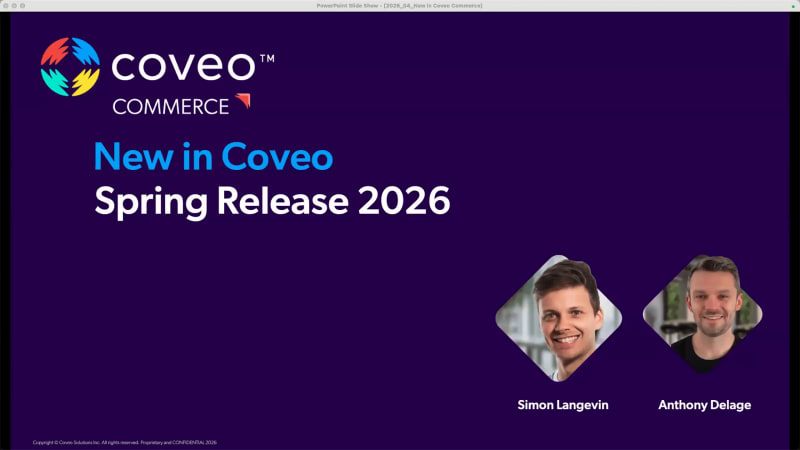 Hello. Good morning, everyone, and also good afternoon for those of, our customer base that are joining us from Europe today. Welcome to New in Coveo for Commerce, and I'm happy to say this is the spring edition. For those of us in Montreal, we are very happy it's the spring edition. We've been looking for forward to this. My name is Sheerine Reid. I'm part of the product marketing team here at Coveo, and I'm going to be your host today. I'm also joined by my colleagues from our amazing product team. Simoneau and Anthony Delage are here with you today, and they're gonna be doing most of the heavy lifting, spending the next forty minutes or so diving into the latest and greatest functionality for our commerce product and also providing a bit of a sneak peek into what is coming next. So before we get started, just a quick reminder that everyone is, of course, on listen only mode due to the large amount of attendees on the webinar today. However, we do wanna hear from you. And if you have any questions, please, you know, feel free, pop them in the chat, and we have some time reserved at the end of the session to answer those. And, also, and always, pervasive question, is this session being recorded? And, yes, it is. So you should receive a copy of the recording within your inbox if you've registered for the webinar about twenty four hours after the event. Alright. So with that being said, let's get started here. There we go. Slides are working. Before I hand it over to Simon, I just wanted to take a quick look at what's going, on out there in the market. And I'm sure most of you are aware that product discovery is really going through a fundamental shift. So for years now, digital commerce has been built around search boxes, filters, and navigation. Right? Users expect to type in some keywords related to products they're looking for and then see a a product grid, a bunch of tiles with relevant ranked products, and hopefully some just as relevant filters on the side so that they can further, refine and filter their results. But that model really assumes, you know, two fundamental things. The first is, of course, that the customers know exactly the products that they're looking for at that particular time. And the second is that the search system is intelligent enough to retrieve and rank those the right products matching what the customer is intending to using those two or three words that they use in the search box with the right items in the catalog. So intelligence systems, you know, using AI for retrieval and ranking like Coveo have really gotten have gotten really, really good at doing that. But what's changed now is the influence of LLMs like ChatGPT. So they've reset expectations and some behaviors in accordance with that. Customers now know it's possible to actually start with questions. They can express them in natural language, like they would be talking to a sales associate associate and get help on the discovery process itself. So, you know, guidance, answers, education type of information, not just a list of of results. So for those that are not clear yet on the products they actually wanna add to their cart, this is really super helpful. And the data we've compiled here, you can see on the slide makes that clear. Right? So nearly seventy percent of shoppers expect conversational experiences to shape how they shop. The majority are ready to engage with AI that can answer questions in real time. And importantly, I think this isn't just a novelty. So forty percent are more likely to purchase when guided by an AI assistant. So this isn't a feature trend. It's it's really a behavioral shift on how discovery happens. This data, by the way, it's it's just to note that it comes from our relevance report, and we're gonna have that published on our website in just a couple of days. However, I I wanna point out something that it's it's still early. Right? We we don't know exactly how far or how fast this will reshape experiences on retailer or brand sites themselves. But the shift in the user behavior is clear, and it's something you really need to start preparing for and actively experimenting with now. I was recently at Shop Talk a couple of weeks ago, and what I heard over and over again from, you know, the sessions and people on the show floor is that there's no wait and see mode at this point. People are really leaning in. Consumers are adapting quickly, rapidly, and you really need to be ready for that. Okay? So what's our point of view at Coveo? So at Coveo, our point of view is simple. We've been talking about the intent box for quite a while now, and we believe that the shift the shift that we see happening, it doesn't replace search. Instead, it elevates it. Right? So conversational experiences only work if they're grounded in the same systems that power your relevance, your ranking, and your product discovery today. What matters isn't just generating that answer. It's generating the answer that are grounded on your catalog. They're contextualized, you know, around real time availability, pricing, and the business rules that you've established. They're aligned with the same relevance and optimization strategies that are driving the rest of your search experience. And that's why we see a conversational product discovery as search native, and it's not separate from it. And that's a real big distinction. We're extending the core of what already works, so our indexing, ranking, merchandising, all of that those features into a new interface that can interpret intent and dynamically assemble the right experience. So if there people are looking for products, they're going to see products right away. If people have a question, then it's able to understand that question and then act as a guided discovery mechanism, dynamically structure a UI experience. So, and it's all powered by the engine driving your search experience today. So with that, I'm gonna pass it over to Simon, who is going