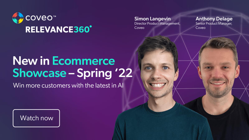 Get even more value from Coveo AI. Watch this session for an overview and demo of our newest ecommerce innovations. Evolved search, merchandising, and personalization – all designed to help you maximize your enterprise’s growth.