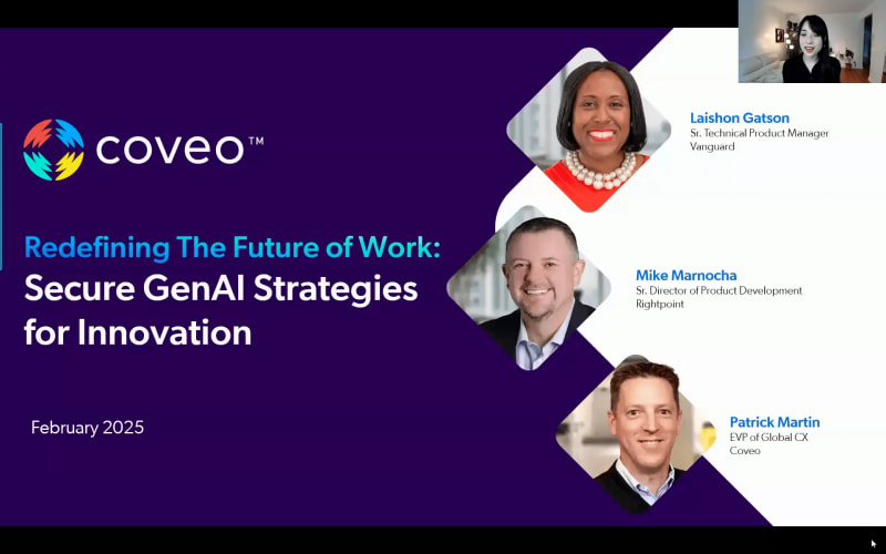 Righty. Looks like we're great to go. Hello, everybody, and thank you so much for joining us for our employee experience roundtable, redefining the future of work, secure gen AI strategies for innovation. My name is Patricia Patsy Liang, and I lead product marketing management for Workplace here at Coveo, and I'm going to be your host for today's webinar. We're so thrilled to have you join us as we explore how emerging AI technologies, particularly GenAI, are really shaping the modern workplace. In this session, we're going to explore how intelligent search, generative answering, and other technologies help the world's leading companies enhance employee productivity and promote continuous innovation. And today, we are so honored to have this wonderful dynamic lineup of speakers with you today. We're going to have Patrick Martin, our EVP of global customer experience here at Coveo, to interview Leishan Gatson, senior technical product manager of search experiences at Vanguard, and Mike Marnoka, senior director of product development and AI at RightPoint. Each of our panelists bring a huge wealth of experience today in enterprise search, knowledge management, and AI innovation. And, collectively, they have about sixty years of enterprise experience to share with you all today. And whether you're just at the beginning of your AI journey or looking to scale existing initiatives, our goal today is to help you, come away with some actionable strategies and advice to help you drive agility and growth across your organization. And so just to quickly go through the agenda for today, we're gonna be doing introductions, an interview, and a q and a. And so do note that you are currently in listen only mode, but you can ask questions at any point during today's webinar, and we'll answer them during the q and a section or email you afterwards. And you will be getting a recording of this webinar as well in the next twenty four hours. With that out of the way, Patrick Martin, would you like to take it away? Sure. Thanks so much, Patricia, and thanks everybody for joining us today. Pretty excited to share the time with all of you and share the time with, Mike and Leishan. So, we're gonna do some some quick, quick introduction. So let's start with, you, Leishan. Tell us a little bit about yourself and your team. Yeah. So hi, everyone. I'm Leishan Gatson. I am a senior technical product manager here at Vanguard. I've been at Vanguard for over twenty five years. I've been working in the digital space for probably about fifteen years, and I've been working with search for over a decade. We have a whole fully stacked team of search developers and engineers, and we, I would say, we, support probably about twenty five applications here at Vanguard, both client experiences and employee experiences. In years of search, what excites you the most about search these days? Obviously I mean, the obvious is the Gen AI and the evolution of search, going from strictly a a list of search results to now being able to give summarized answers and being a a much greater tool for our users to get to the information they need quickly and efficiently. Love that. Yeah. Definitely. And when we think about, you know, the upcoming year, you know, what would you say are are your priorities when you're thinking about, you know, that that technology and, you know, the outcomes that you're trying to accomplish? Yeah. For twenty twenty four, we introduced GenAI to our employee base. So it would be to expand that. We just turned it on for all of our, employees for our Internet. So that's exciting for us for twenty twenty five. And, also, we are concentrating on our client experiences externally. So we're really looking to expand that to our external clients. With us being a financial company, we do have some challenges with now going to Gen AI and the FINRA rules and things like that. So we're really excited and looking into exploring that for our client base. And then I think the last thing is we're it's we're expanding internationally. So we just turned on search for our Canada site, Mexico, multilingual searches. So those are some of the things we're doing twenty twenty five. Oh, definitely some some, exciting projects ahead. And, you know, definitely, you know, a lot of a lot of folks out there are focused on, you know, improving their employee experience and their customer experience, and these technologies definitely enable that. So you've been on a journey so far. If you just reflect a little bit on the previous year on twenty twenty four, what are what are the biggest takeaways or the lessons learned you've had so far in your journey? For me, it's still that content is king. I would say regardless of what search engine, how much we use Gen AI, it's really based on the content that we are, training these models on and the content that we have in in the back. So we've learned that it's really key for us to get some content governance, do some things. I would love to explore GenAI for actually content creation and content curation and things like that. So not just about finding the content, but also about creating the content and making it more digestible for GenAI. Yeah. Definitely. I mean, you know, a a lot of people have, you know, kind of put knowledge management on the side for a long time, and now they're waking up to that exact conclusion where, you know, we've been talking about garbage in, garbage out for years, but it's taking a whole new significance and a whole new level with with Jenny I for sure because, you know, your your answers are only gonna be as good as the content that you feed it with. So definitely definitely a good good, good lesson there. So definitely, we're we're gonna talk about Gen AI for sure. But before we dive into that, we all know that, you know, great search is kind of the the foundation and lays the groundwork for great AI. So for both of you, Leishan and and Mike, what what challenges prompted yo