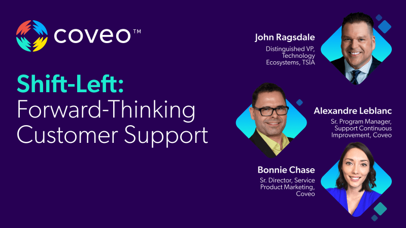 Hello, everyone, and welcome to today's webinar. Fifth left in the wild, a forward thinking customer support strategy in twenty twenty four, brought to you by technology and services industry association and sponsored by Cadeo. My name is Vanessa Luzaro, and I'll be your moderator for today. Before we get started, I'd like to go over a few housekeeping items. Today's webinar will be recorded. A link to the recording of today's presentation will be sent to you within twenty four hours via email. Audio will be delivered via streaming. All attendees will be in a listen only mode, and your webinar controls including volume are found in the toolbar at the bottom of the webinar player. We encourage your comments and questions. If you think of a question for the presenters at any point, please submit through the ask a question box on the top left corner of the webinar player, and we will be opening it up for a revolt Q and A at the end of today's session. Lastly, feel free to enlarge the slides to full screen at any time by selecting one of the full screen button options which are located in the top right corner of the site player. I would now like to introduce our presenters today, John Ragsdale. Distinguished Vice President Technology ecosystem for TSIA. Bonnie Chase, Senior Director, Service Product Marketing, for today. And Alex Livlon, senior program manager, support continuous improvement, Coveo. As with all of our TSAA webinars, we do have a lot of exciting content to cover in the next forty five minutes. Let's jump right in and get started. John, over to you. Well, thank you Vanessa. Hello, everyone, and welcome to today's webinar. We're talking about Shift Left, which is a strategy that we first heard, a couple of years ago from very large inter Cries firms, and it's now starting to filter down into more of the industry and small and medium sized businesses. So we wanted to focus on this topic today. If you're not familiar with Shift Love, it's really a win win strategy. It's not only reducing the support costs, but it's also improving the customer experience. So it's all about empowering users, both customers and tech support agents, to prevent issues and quickly resolve issues and eliminate, escalations, and hopefully eliminate cases entirely. So a little more detail on what a shift left strategy means for support. Some of the key aspects are improving self-service enabling self-service for customers to more easily resolve their own issues and also resolve a wider range of choose. Knowledge sharing and empowerment. This is really about getting the information to the people that need it. Again, frontline agents, as well as customers, proactive prevention, trying to detect issues, resolve issues as quickly as possible, or even before the customer is impacted. And there are a number of benefits to this strategy, improving user satisfaction, again, both for customers. It's it's lower in effort, increasing customer satisfaction, and improving agent satisfaction. Definitely, some cost reduction, efficiency improvements, but, I think that it's important to understand in this annual recurring revenue or ARR world. Lowering cost is not necessarily the driver of a ShiftLab strategy. This is some data from the TSA I have been mark that shows there is an incredibly strong correlation between the support experience and renewal rates. So improving the customer experience, such as lowering customer effort, faster resolution times, higher support satisfaction, absolutely correlate to long term revenue and long term value up for customers. So, yes, you're hopefully going to be more efficient. You're gonna cut some support costs. But this is not about cost center. This is about support becoming a revenue center and showing the the contribution that the support experience is having on long term revenue. So this is, another data point that that proves this we see that customer effort scores, which is asking a customer, you know, how much work did you have to put in to resolve this problem? We see that the highest customer effort scores tend to also have the highest net promoter scores. So net promoter becomes an important issue when we're looking at disability, viability of the account. It factors into account health scores for the customer success organization and lowering customer effort is absolutely going to drive up the responsibility of your customers. The final point I wanted to make after a two year hiatus we completed the support, tech stack surveys. We did tech stack surveys for all of our research practices at the end of last year. And I think it's really interesting even though we continue to hear, economic issues. We know budgets are really tight. There is really high plan spending by support organizations on a number of technologies that can contribute to this shift left strategy. This is the percentage of companies that said they had, budget earmarked to invest in new or additional capabilities across all of these categories including communities, which is a great way for for peer to peer support and self-service. AI based support technologies, which includes GenAI capabilities, something that our guest speakers today know a lot about, intelligent enterprise search. This is the analytics based searching that companies like Coveo are well known for. Sixty one percent are investing in knowledge management programs over half, investing in more proactive support, intelligent diagnostics, and sixty five percent in self-service portal. So know, a lot of companies were really focused on lower level, level zero, level one issues for self-service, and we're seeing that these self-service capabilities are really starting to get stronger and stronger to enable a much larger range of issues to be resolved by the customers themselves. So enough for me, I would like to turn things over to our first guest speaker. Bonnie Chase is senior director service product marketing for Coveo. Why you've done so ma