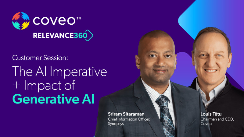 Learn from Synopsys, SVP and CIO, Sriram Sitiram and Coveo CEO, Louis Têtu as they discuss the opportunity to leverage AI and Generative AI – giving you key insights to build your own strategy and the key considerations you need to think through to limit risk and ensure success.
