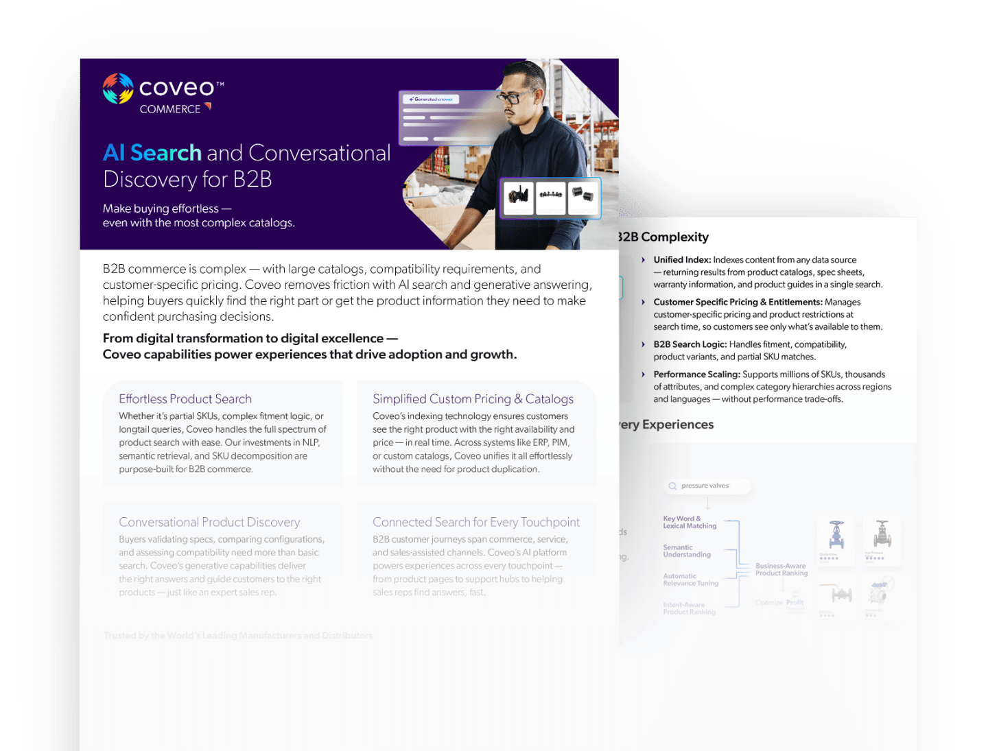 Prêt à rendre l'achat B2B sans effort ? Apprenez comment les principaux fabricants et distributeurs utilisent la recherche IA et la découverte conversationnelle pour gérer des millions d'UGS, des prix spécifiques aux clients et des exigences de compatibilité complexes - aidant ainsi les acheteurs à trouver les bons produits, plus rapidement.