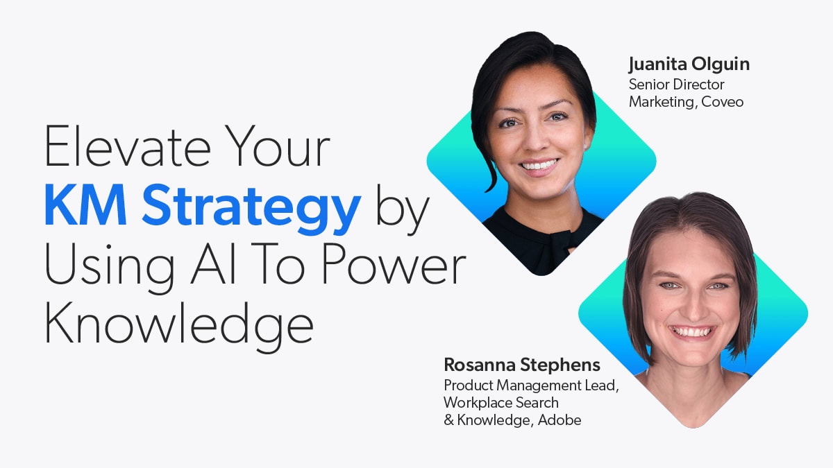 Hi. I'm Juanita Oldine, senior director of platform marketing at Coveo, and I'm really excited to be presenting to you today on you can elevate your KM strategy by using AI to power knowledge. For those of you that are not familiar with Coveo, we are an AI search form that's been around since two thousand and five, and our mission is to help companies solve those their toughest, most difficult challenges when it comes to managing and prize information and knowledge, and I am really excited that I get to co present today with Rosanna Stevens from Adobe. Hi, everyone. I'm Rosanna Stevens. I am a digital employee experience leader at Adobe. And my team focuses on enabling and fostering, decision making through knowledge search and insights. Kilometers is passion. I've been in this realm for about twenty years. And I'm especially interested in how we bring product management and design thinking mindsets into how we build knowledge management strategies. So I'm looking forward to speaking with you today about that. As a cam practitioner bringing those experiences in. And thank you so much, Juanita, for inviting me to speak with you. This is going to be a pleasure. Yes. Looking forward to it. So why don't we just get started and jump right in? So today, we're gonna talk to you about three main topics that, we hope help elevate your cam strategy. The first is the biggest obstacles to elevating cam at the C suite level. The second is how you can use AI to transform the perception of kilometers. And the third is the expected business outcomes and benefits that you can achieve from using AI. So let's jump right in. Starting with the biggest obstacles to elevating kilometers. So I wanted to really get started by looking at more at trends and what was going on in the world of kilometers. And so I looked at a few different sources and really came up with these key points that I feel like are important to cover and to set a baseline on. So the first is that there is an increasing use of AI in the world of CAM today. That's probably part of the reason that care today. Secondly, we see that there's more growth in the use of informal channels such as slack as reputable sources of information for Cam practitioners as well as users when they're thinking about information they're trying to find. Third, we see that there's more integration with business, teams, and systems. So KM practitioners, the leaders are getting more integrated into the business working hand in hand to solve those real business problems. We also, of course, see a move to more conversational expectations with the rise of chat GPT and a growing increase in a focus on key business outcomes and results, we're seeing more of a justification for these different CAM projects and initiatives that needs to be shown. What I what I also found very interesting was that there's actually going to be a new escape for knowledge management discovery software that should be coming out later this year. And so all of these things point to the fact that kilometers is under transformation, and I'm sure that you can relate to or probably thinking about or seeing some of these trends as well. We also see that our customers and companies that we talk to, and by the way, we are speaking with the meeting with global enterprises. In all types of industries. And what we wanted to share is that companies are starting to, you know, take notice and take action to these one fundamental shifts in kilometers. And so a few points I wanted to share with you are that we see that companies are starting to focus more on an expanded view KM where it's not just about internal employee experience, but also the customer experience as well. We also see that business teams and IT teams are starting to work together much more collaboratively sometimes forming centers of excellence, which help really drive successful projects. We also see interestingly a move to agnostic composable technology and capabilities, more, UI variety or headless UI options so that you're kinda meeting that user wherever they are in their journey. Lastly, of course, similar to the market trends, we do see companies really trying to focus on the business outcomes and the business value that they can bring to their end users. So there's a lot happening not only in the market, but companies are really taking action and Rosanna, I know that you're seeing some of this as well. Any thoughts on this? Definitely, Yavonida. So my team, as I mentioned, at the beginning, We look at knowledge management and at insights, that's, I believe, part of knowledge management, and that insights space Gartner put out a study in twenty twenty two about what they call the total experience. And they define the total experience as looking at poor disciplines and experience to create a whole. And that's the employee, the customer, that a user and the multi experience. And what they say is that organizations who look at the total experience by twenty twenty four, we'll have twenty five percent more, success in their overall experience with their customers and employees. So Just saying that more broadly outside of cam coming into cam. I think that this is the right direction. For us to be going. Also, I've been working in IT on and off through various years and, you know, in the past fifteen years or so, I've heard a lot about the transition from IT as an order taking business into being more of a business partner. So I like to think of it as a business transformation team. And the reason is that we sit within the organization partnering with our business and the business units focus on their specific outcomes. And IT, we see the holistic picture of the entire business. So we can work with these business units and then bring in their outcomes into, like, a holistic picture for the entire organization. And so finally, this is focused on the business outcomes. So as I said in the beginning, I'm really interested in a product management m