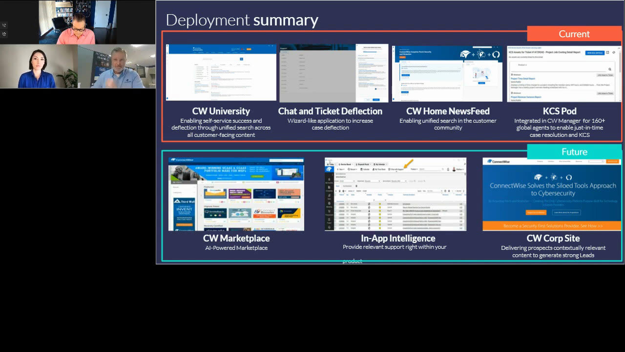 Hello, everyone, and welcome to today's webinar, How to Deliver the Most Relevant Self-service Experience Every Time, brought to you by Technology and Services Industry Association and sponsored by Coveo. My name is Vanessa Lucero, and I'll be your moderator for today. Before we get started, I'd like to go over a few housekeeping items. Today's webinar will be recorded. A link to the recording of today's presentation will be sent to you within twenty four hours via email. Audio will be delivered via streaming. All attendees will be in a listen only mode, and your webinar controls, including volume, are found in the toolbar at the bottom of the webinar player. We encourage your comments and questions. If you think of a question for the presenters at any point, please submit through the ask a question box on the top left corner of the webinar player, and we will open it up for a verbal Q and A portion at the end of today's session. Lastly, feel free to enlarge the slides to full screen at any time by selecting one of the full screen button options, which are located on the top right corner of the slide player. I would now like to introduce our presenters today. John Ragsdale, distinguished Vice President of Technology Research for TSIA Bonnie Chase, Senior Product Marketing Manager for Kaveya and Matthew Bregen, director of education for ConnectWise. As with all of our TSIA webinars, we do have a lot of exciting content to cover in the next forty five minutes. So let's jump right in and get started. John, over to you. Thank you, Vanessa. Hello, everyone, and welcome to today's webinar. Our topic today is how to deliver the most relevant self-service experience every time. And for those of you who are, frequent watchers of our our Thursday webinar series, a common theme for me is that, we need to keep abreast of what's going on in the consumer world because both your employees and your customers, bring a lot of those consumer experiences and expectations into the workplace with them. And definitely relevant content, personalized content, is is one of those things. And I I'm gonna open with a personal example. I was, shopping for some shoes online a couple of weeks ago when I was working on my slides, for this. And these are actual screenshots from my phone. I was browsing these sneakers. I was really interested in these camo looking Tom Ford sneakers. And I clicked and went to the Tom Ford site, and you can see they were out of stock. So I thought, oh, oh, well. I'll find something else. And five minutes later, I logged in to Instagram, and guess what was the very top of my feed is an ad for these sneakers, from another retailer who did have them in stock. So, you know, in some ways, it's a little creepy the way that, you know, social media and Google and all of these, retailers are are tracking our behavior. But on the other hand, as consumers, we're becoming very accustomed that when we're searching for content or we go to a retail site that what we are seeing, what is being prompted to us, and our search results are becoming very tailored specifically to us. And it saves a lot of time. It creates a a great experience that definitely is helping them sell sneakers. But, you know, keep that in in mind as we start going through that because there are a lot of corollaries into the b to b world. And, to kind of frame this discussion, I've been thinking about publishing this paper about a relevancy trajectory, and this this webinar kind of forced me, to to get to work on that idea. And I've come up with, like, four stages of relevance or level of personalization that you can have in self-service. And at the lowest level is really irrelevant. And, I think we've all seen those website. There's a lot of disparate content. They've got all of this unrelated stuff on the website, but there's no real cohesive way to navigate it. And customers are just trying to hunt and hopefully find what they need. A step up from that is getting into manual relevance, and this is where we see unified search introduced so you can do one search and get results from every repository. And there's some manual filtering options that they can filter just for the product they're interested in or the region they're interested in. So it is more relevant, but it's a manual process. The next step up is what I called personalized relevant, and that is where you're prefiltering, FAQs or, content searches to only show the content that is relevant to this customer. And that could be, you know, filtered for the products they're on, the versions they're on, the region they're in, whatever. And the ultimate, where we're seeing just a few companies starting to, get experience is really predictive relevance. And this is mining the customer journey so you can understand before that customer even asks a question what they're probably going to ask and which content, is the most relevant for them. So I've got a couple of slides just to with some data show you where most of our members are on this journey. So comparing the twenty seventeen data to the twenty twenty data, you can see that there's been a pretty big turnaround in the last three years of moving from this idea of an irrelevant experience to a manual relevance experience. So back in twenty seventeen, more than half of companies, fifty nine percent, forced customers to but as of the twenty twenty survey, and this data is from about, December of last year, about two thirds of our members now have a unified search experience. So that is allowing, you know, much better usability, much better access to content, and the ability to manually filter to get exactly what they need. Moving up to personalized relevance, it's still kind of a a lag here. Only twelve percent of our members are offering personalized FAQs. And, you know, the FAQ list can be one of the most impactful things on your website because when they first log in, they see this list of frequently asked questions, and, hopeful