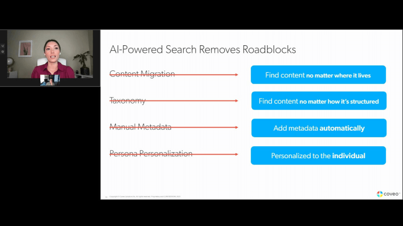 Hello, everyone, and welcome to today's webinar, Your Roadmap to Knowledge Transformation in twenty twenty two, brought to you by Technology and Services Industry Association and sponsored by Kazeo. My name is Vanessa Lucero, and I'll be your moderator for today. Before we get started, I'd like to go over a few housekeeping items. Today's webinar will be recorded. A link to the recording of today's presentation will be sent to you within twenty four hours via email. Audio will be delivered via streaming. All attendees will be in a listen only mode, and your webinar controls, including volume, are found in the toolbar at the bottom of the webinar player. We encourage your comments and questions. If you think of a question for the presenters at any point, please submit through the ask a question box on the top left corner of the webinar player, and we will open it up for a verbal Q and A portion at the end of today's session. Lastly, feel free to enlarge the slides to full screen at any time by selecting one of the full screen button options, which are located in the top right corner of the slide player. I would now like to introduce our presenters today. John Raxdale, distinguished researcher and vice president of technology ecosystems for TSIA, and Bonnie Chase, director of product marketing and service and support for Caveo. As with all of our TSIA webinars, we do have a lot of exciting content to cover in the next forty five minutes. So let's jump right in and get started. John, over to you. Well thank you Vanessa. Hello everyone and welcome to today's webinar. I'm very excited about this one because it's a topic that both Bonnie and I are very passionate about. We've both spent a lot of time in our careers in knowledge transformation, knowledge management, knowledge technology. So we're really excited to share some of our best practices and lessons learned with you today. You know, I've been doing this knowledge management survey every year since twenty fourteen, and in it I ask people to rate their employee facing and their customer facing knowledge management programs on a ten point scale, with one being needs a lot of work, and ten being awesome. And if you look at the scores over, the last number of years, you'll see that despite the millions of dollars that have been spent on knowledge management, people, process, and technology, the scores really haven't gone up very much. So today we're gonna talk about some of those challenges, juggling some of the priorities, and hopefully give you a roadmap, to move forward this year with improving your Kilometers program. Before we get started, I'd like to start with a question for the audience. What do you consider your biggest obstacle to a successful knowledge management program? Is it people? You don't have enough resources dedicated to creating and maintaining content. Is it process? A lack of defined processes for creating and maintaining that content. Or is it technology? Employees, customers struggle to find content due to poor search technology or badly designed portals? Or all of the above? Are you struggling with people, process, and technology? So we're, I'm gonna give you a couple minutes to get those votes in. While we do, Bonnie, I know you talk to a lot of companies about the technology piece, but, I'm sure you're also seeing the people and process side as well. Yeah. Absolutely. I mean, it it definitely takes all three, to be successful. But, you know, what I see is is it's not necessarily just the fact that it's not enough resources, but also it's not necessarily the right people who are involved as well. So, you know, maybe maybe it's not bringing in the the right level of, you know, maybe an executive sponsor that's needed or, you know, not being able to even show how like, you know, how to to show that you need more people. I know when I was a knowledge manager and and we asked for resources, you know, we didn't get resources if we needed another person. We had to prove that we needed a resource. And how do you prove that you need resources? Right? So so that was a challenge as well. Well, let's see what, the audience says. We've got almost everybody in the audience has voted so far. And interestingly, it's pretty evenly split, across people, process, so whether you are struggling with one of these three or all of these three, hopefully you're gonna pick up some useful tips today. So thanks everybody, for for taking that polling question. So I'm sharing some data from, the Tech Stack survey of support services that I completed the end of last year. And yet again, as it has every year, I've been doing these technology spending surveys going all the way back to two thousand and six. There's always a lot of budget earmarked, for spending in anything related to knowledge management. Eighty six percent of companies are planning an investment in their portal. Eighty two percent knowledge management, communities, chat bots, intelligent search, even video content management. So how do you create a logical sequence for investing in multiple technologies? Obviously, you can't invest in everything at one time. You're just going to boil the ocean and probably not get really great results. And I want to talk about, really figuring out some sequencing on these investments. So those of you who have read my book, Lessons Unlearned, I've got a whole chapter in there about, what is the root of most technology failures. And I talk about the challenge of companies that invest in technology when they don't really have processes to find or they've got broken processes, and you really need to iron that out first. But there's sort of a rare example of when that isn't the case, and it's around, intelligent search, advanced search, analytic based search, whatever your term for that is. And I wanna talk about why investing in that before you have your people in process can really help you figure out the best strategy for those other aspects of th